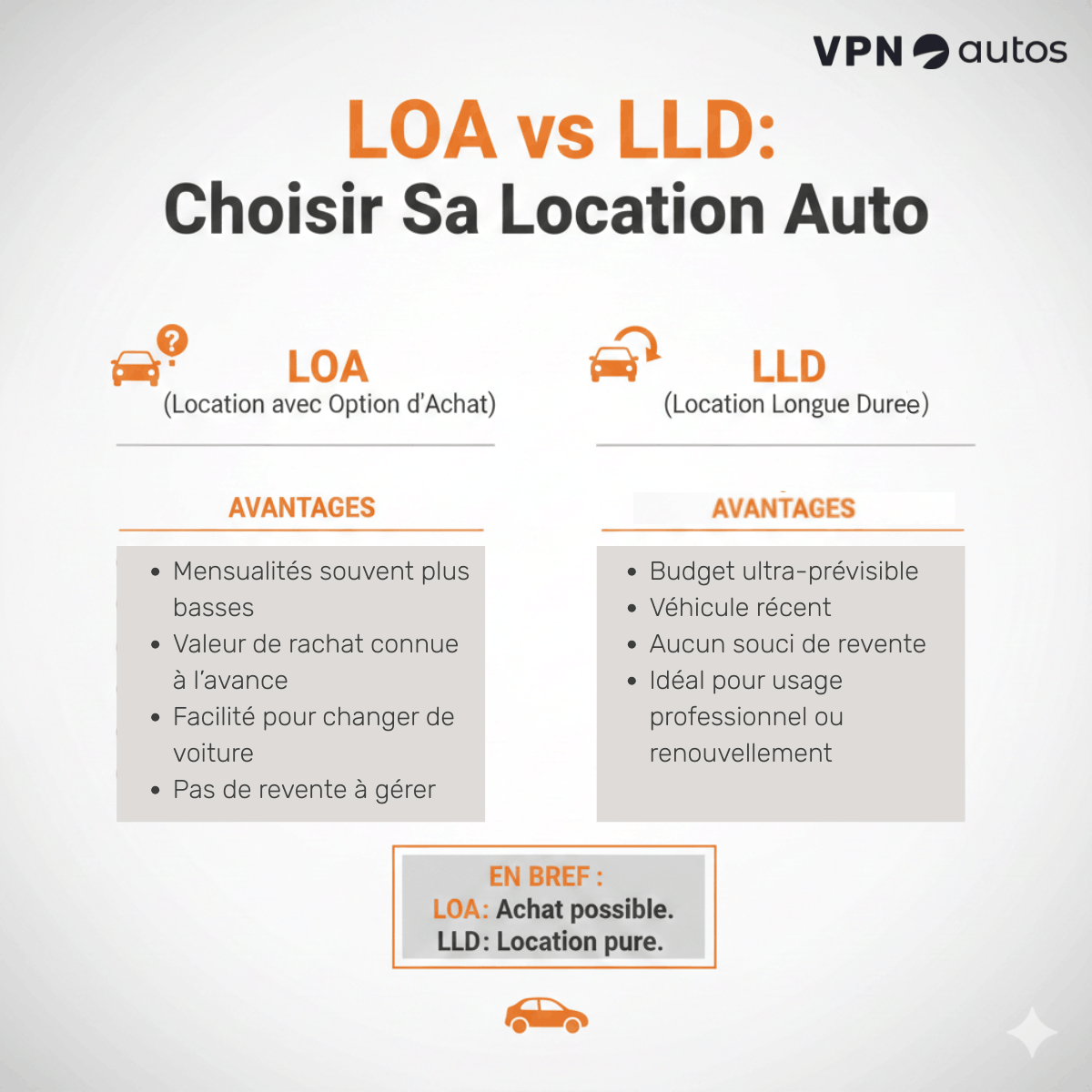 La différence est simple : en LLD, vous n’achetez jamais la voiture.