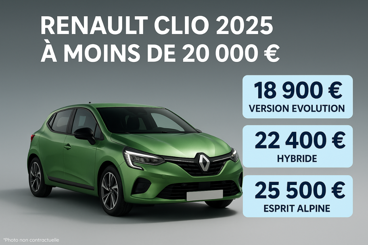 Mais ne nous emballons pas trop vite. Cette version d’entrée reste modeste : un moteur de 65 ch, une boîte manuelle, et des performances… disons raisonnables. Mais à ce prix-là, elle fait le travail avec le sourire. Et si vous avez un peu plus de budget, Renault propose une hybride à partir de 22 400 €. C’est là que la Renault Clio 2025 devient vraiment sérieuse, sans pour autant vider votre compte épargne.