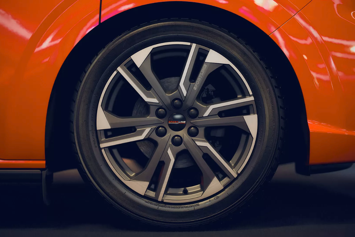 Gros plan sur l'enjoliveur du Volkswagen Transporter Sportline